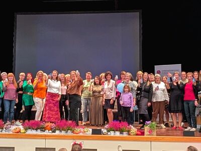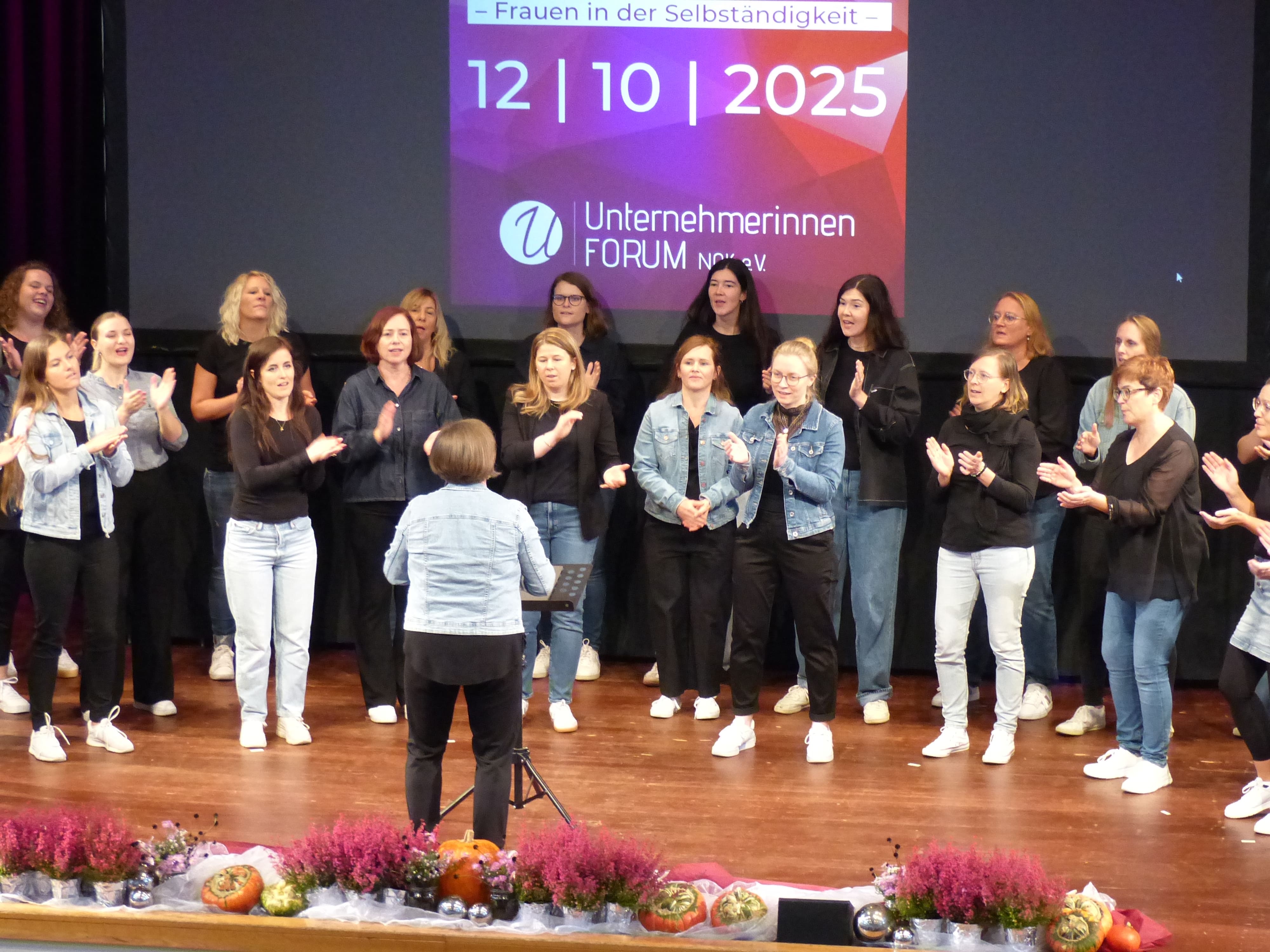 Seit zwei Jahrzehnten steht das Unternehmerinnenforum im Neckar-Odenwald-Kreis für "gelebtes Netzwerken, gegenseitige Unterstützung, gemeinsames Wachstum und die Sichtbarkeit selbständiger Frauen in unserer Region" unterstrich die 1. Vorsitzende Hanna Bender in ihrer Begrüßung. Mosbachs Oberbürgermeister Julian Stipp gratulierte in seinen Grußworten herzlich zum Jubiläum. Stipp erinnerte daran, dass die Gründung des Forums vor 20 Jahren in einer wirtschaftlich schwierigen Zeit stattfand: „Gerade damals war es ein mutiges Signal, dass Frauen den Schritt in die Selbstständigkeit wagten.“ Musikalisch wurde die Eröffnung sehr ansprechend und mit viel Power vom NKG-Frauenchor begleitet und sorgte gleich zu Beginn für begeisterte Stimmen im Publikum.