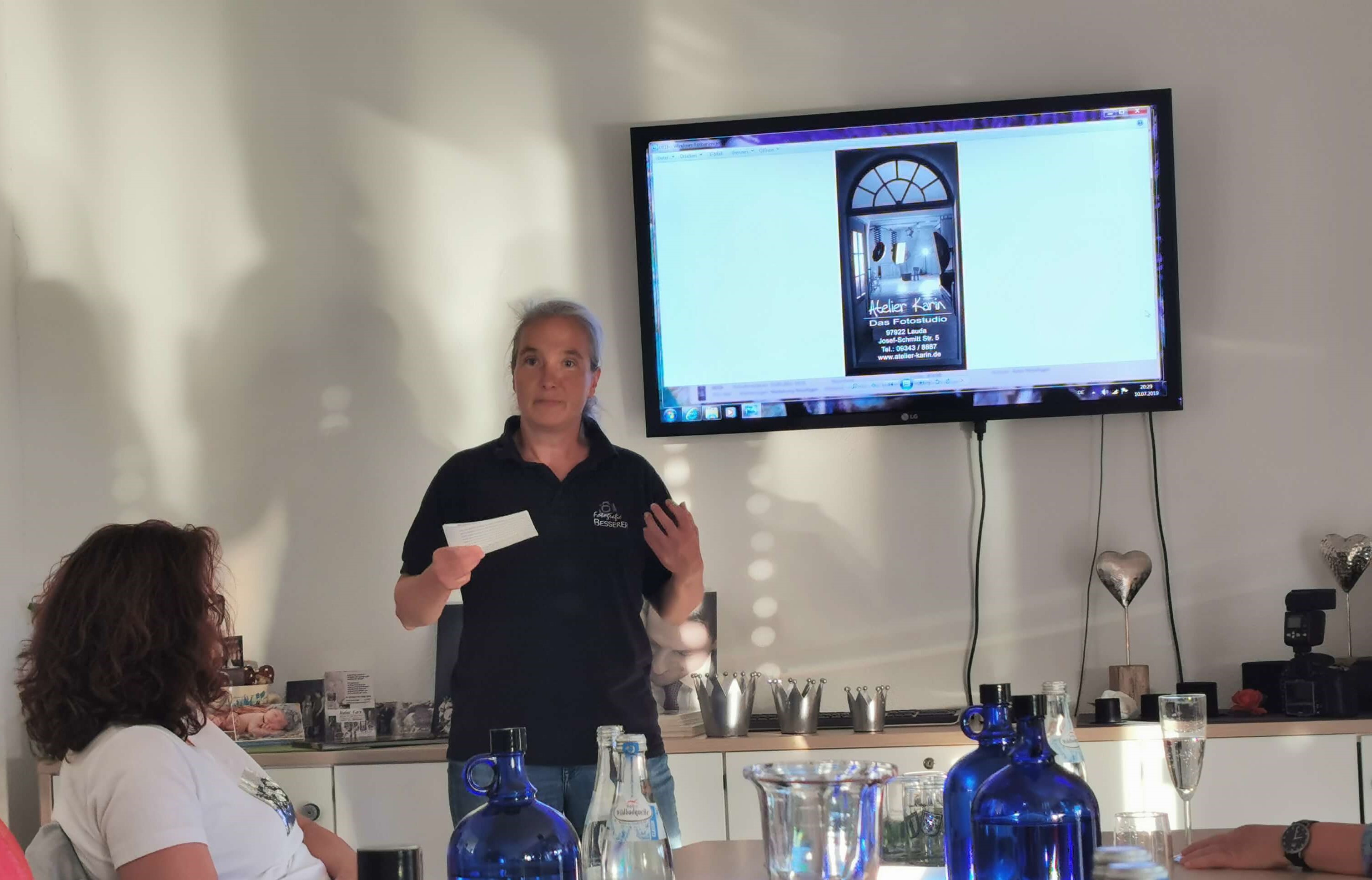 Viel Zeit hatten wir zum Netzwerken – ganz nebenbei wurde viele Fotos gemacht, dafür verantwortlich zeigte sich Karin Besserer; diese stellte ihren Betrieb (Atelier Karin), welcher in Lauda ansässig ist anhand von großflächigen Fotos vor. Diese waren in der ganzen Gartenanlage verteilt, immer wieder entdeckte man eine der großformatigen Aufnahmen. Bei einer Multi Media Show wurde uns der Werdegang vom Atelier Karin dargestellt, das Atelier besteht seit 1990 als eigenständiger Zweig und bietet die ganze Bandbreite der Fotographie an. Gegründet wurde Foto Besserer jedoch schon anno 1930 von Karl Besserer.