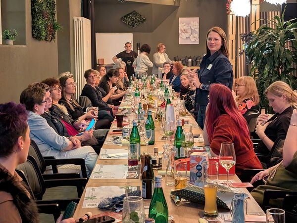 Nach dem Empfang mit einem Aperitif eröffnete Hanna Bender, erste Vorsitzende, den Abend mit einem inspirierenden Jahresrückblick. Sie betonte, wie besonders das Jubiläumsjahr für das Netzwerk war: „Unser Jubiläumsjahr zeigt eindrucksvoll, wie stark unser Netzwerk gewachsen ist und wie wertvoll der Austausch, die gegenseitige Unterstützung und die Vernetzung für jede Einzelne sind.“ Besonders herzlich dankte sie dem Vorstand für sein engagiertes Mitwirken und die tatkräftige Unterstützung, ohne die die zahlreichen Projekte und Veranstaltungen des Jahres nicht möglich gewesen wären. Zudem kündigte sie die vielfältigen Veranstaltungen im Jahr 2026 an, die erneut spannende Impulse, Austausch und Vernetzungsmöglichkeiten bieten werden.